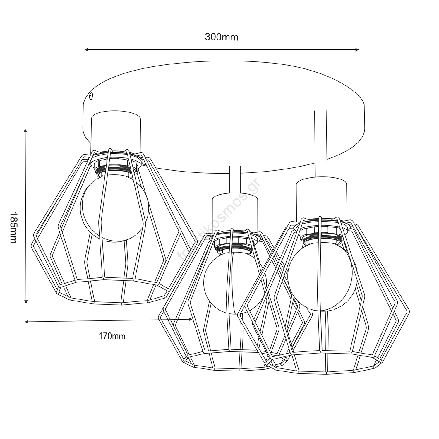 Φωτιστικό οροφής PARKLA 3xE27/15W/230V μαύρο | Fotisti kosmos