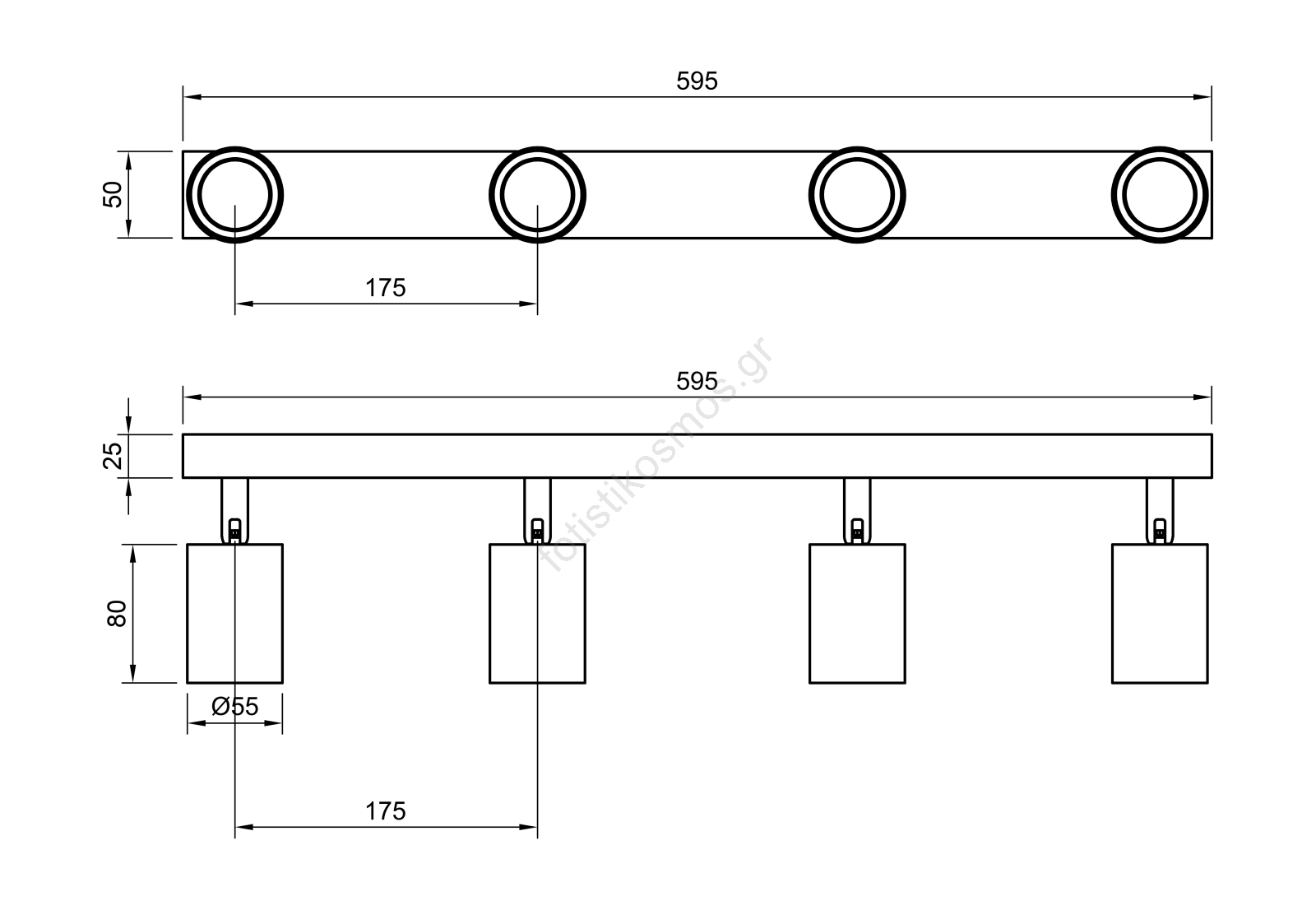 Φωτιστικό σποτ ANGIE 4xGU10/35W/230V μαύρο | Fotisti kosmos