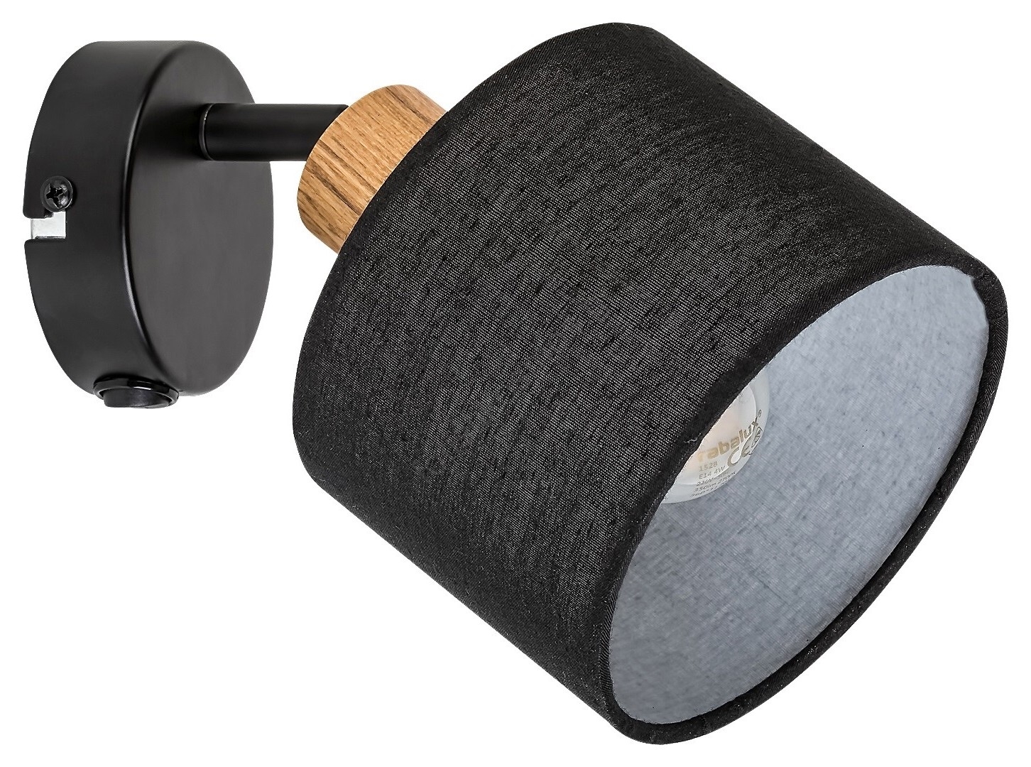 Το φωτιστικό σημείου Miguel σε βιομηχανικό στυλ προτείνεται κυρίως για παραδοσιακά ή μοντέρνα σαλόνια, τραπεζαρίες ή υπνοδωμάτια. Αυτό το επιτοίχιο φωτιστικό, κατασκευασμένο σε συνδυασμό χρωμάτων δρυός και ματ μαύρου, μπορεί να στερεωθεί στον τοίχο μέσω μιας στρογγυλής διακοσμητικής βάσης. Το φωτιστικό είναι κατασκευασμένο από μέταλλο και ξύλο. Το φωτιστικό Miguel μπορεί να χρησιμοποιηθεί με μία λάμπα ισχύος έως 40W. Ο τύπος βάσης είναι E14. Ανάλογα με τις προτιμήσεις σας, μπορείτε να επιλέξετε για αυτό το φωτιστικό θερμό ή φυσικό λευκό φωτισμό. Η κυλινδρική υφασμάτινη καπέλα, που είναι ανοιχτή στο κάτω μέρος, προσφέρει χάρη στο μαύρο χρώμα της διακριτικό ατμοσφαιρικό φωτισμό. Αυτό το φωτιστικό σημείου μπορεί να ελεγχθεί μέσω ενός διακόπτη τύπου rocker στο κάτω μέρος της διακοσμητικής βάσης. Οι διαστάσεις του φωτιστικού Miguel είναι οι εξής: πλάτος 215mm, απόσταση από τον τοίχο 205mm, διάμετρος εγκατάστασης 80mm. Αυτό το μοντέλο παραδίδεται χωρίς φωτιστική πηγή.