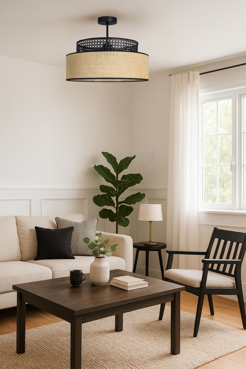 • Πλαφονιέρα οροφής BOHO 1xE27/60W/230V διάμετρος 40 cm μαύρο/μπεζ
