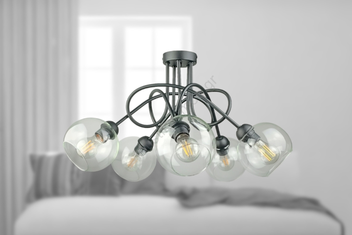 Πλαφονιέρα οροφής EVIE 5xE27/60W/230V ανθρακί/διαφανής | Fotisti kosmos