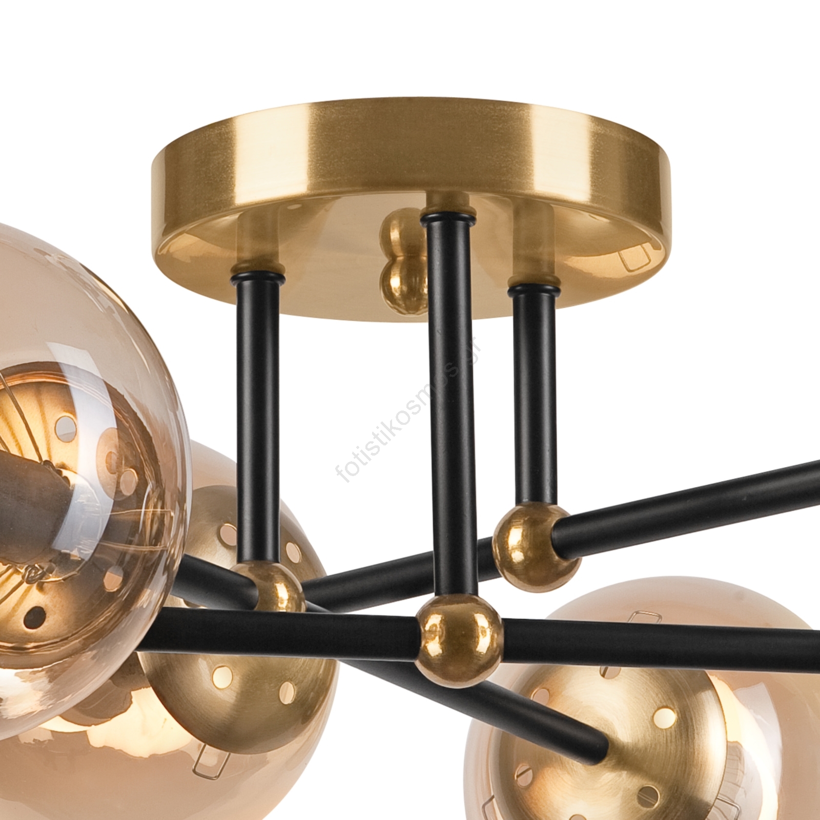 Πλαφονιέρα οροφής MALENA 6xE14/5W/230V χρυσό/μαύρο/φιμέ μπεζ | Fotisti kosmos