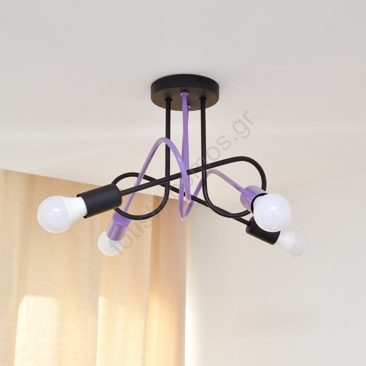 Πλαφονιέρα οροφής OXFORD 4xE27/15W/230V μαύρο/μωβ | Fotisti kosmos