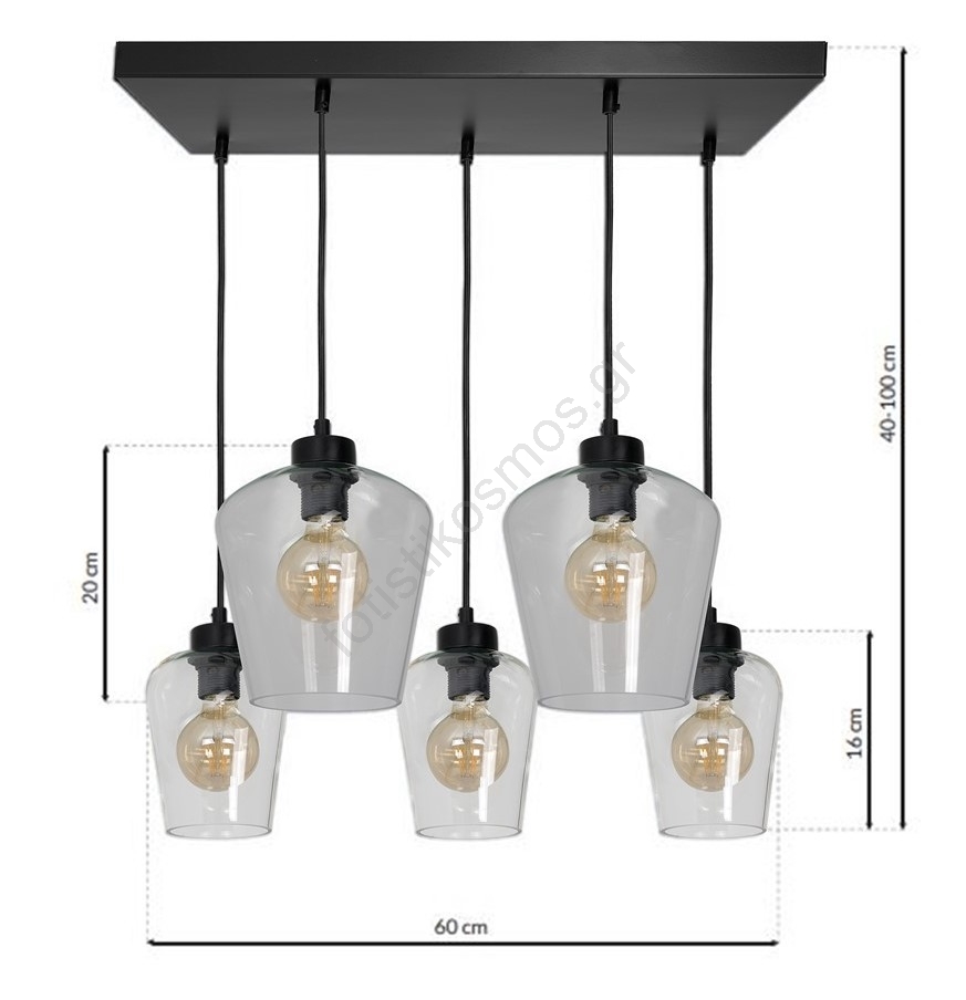 • Πολύφωτο κρεμαστό με σύρμα SANTIAGO 5xE27/60W/230V διάφανο