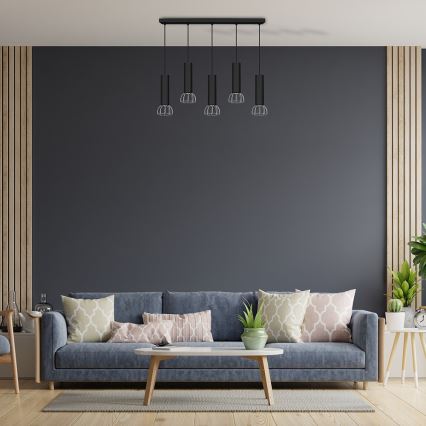 • Πολύφωτο κρεμαστό ράγα DANTE 5xGU10/25W/230V μαύρο/ γυαλιστερό χρώμιο