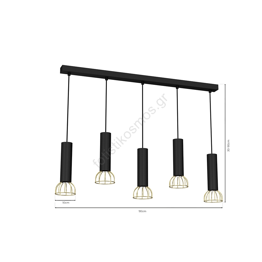 Πολύφωτο κρεμαστό ράγα DANTE 5xGU10/25W/230V μαύρο/χρυσό | Fotisti kosmos