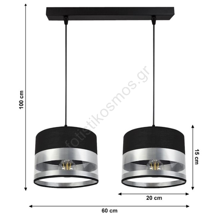 Πολύφωτο κρεμαστό σε ράγα MILO 2xE27/60W/230V ασημί/μαύρο | Fotisti kosmos