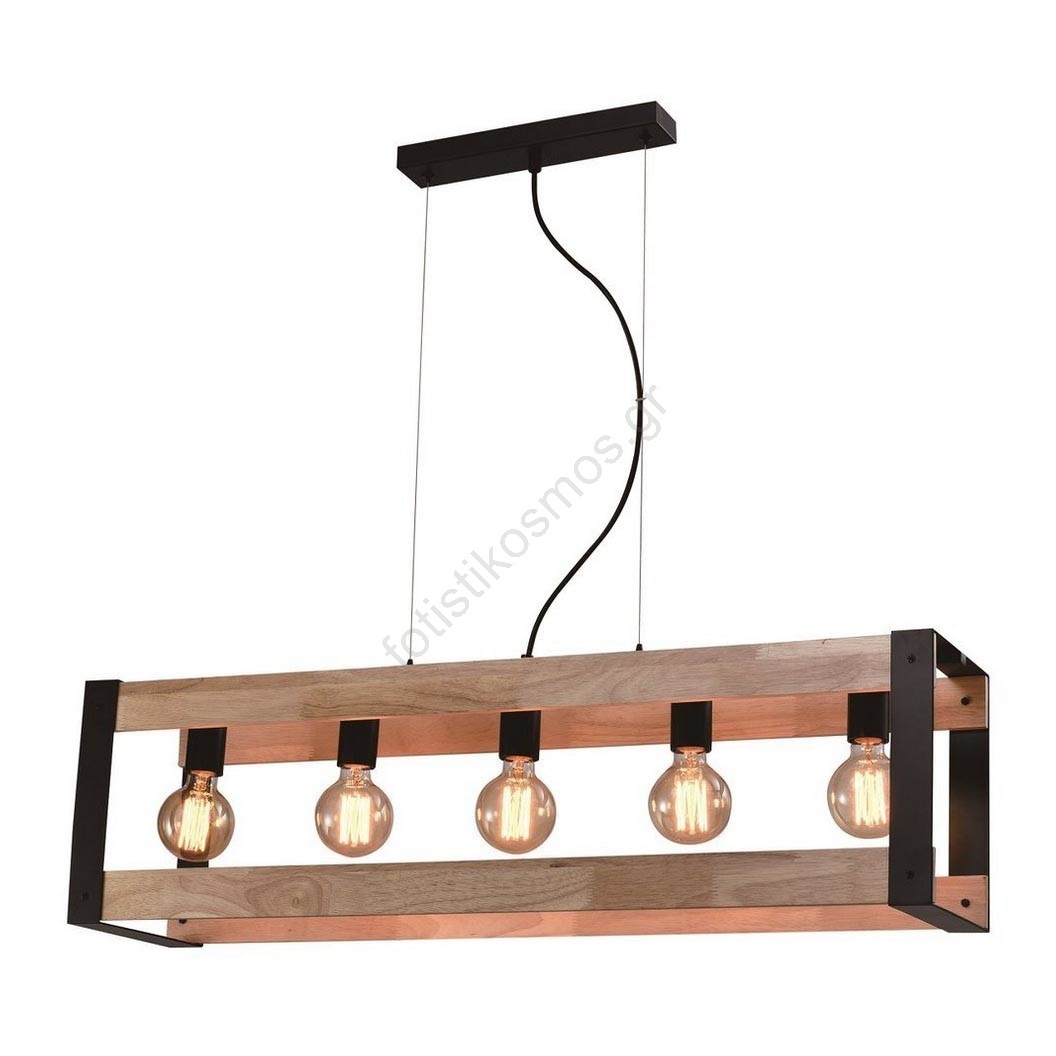 Κρεμαστό φωτιστικό οροφής ράγα VARNA 5xE27/40W/230V δρυς | Fotisti kosmos