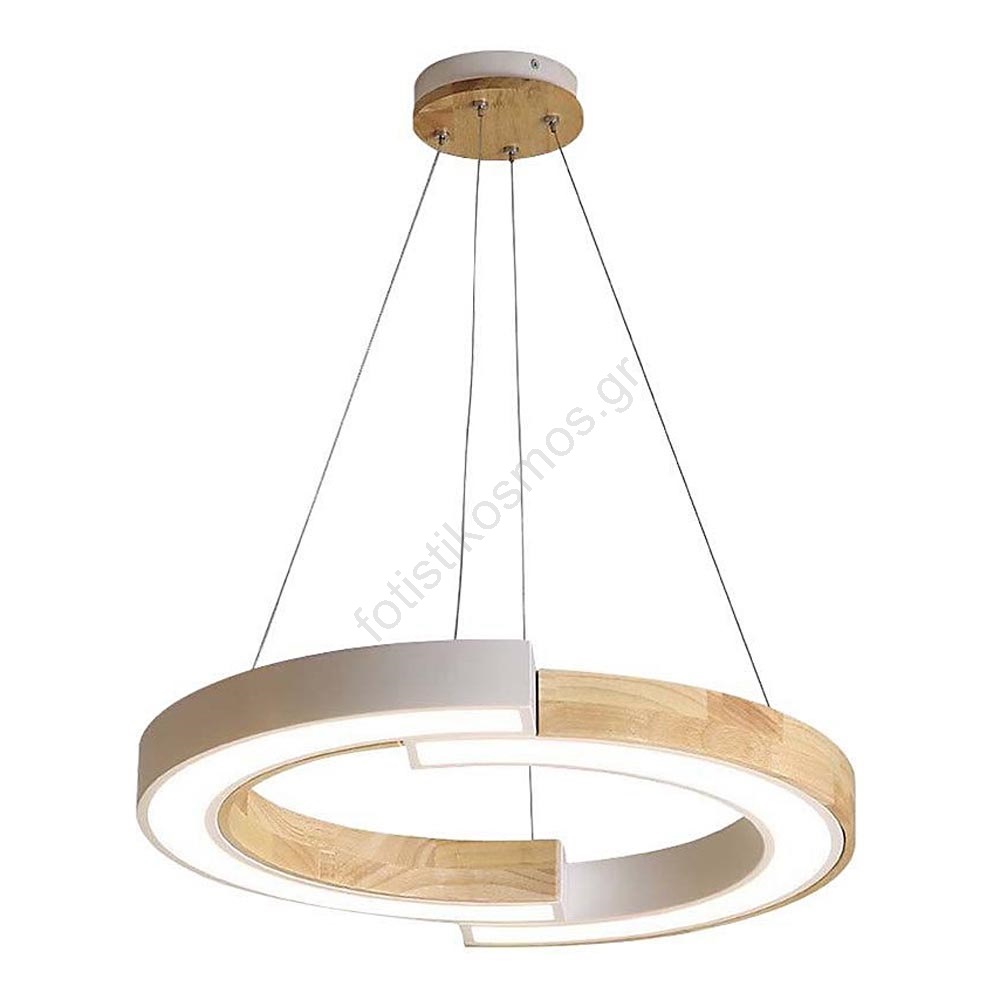 Πολύφωτο LED με συρματόσχοινο LED/32W/230V 4000K λευκό/ξύλο | Fotisti kosmos