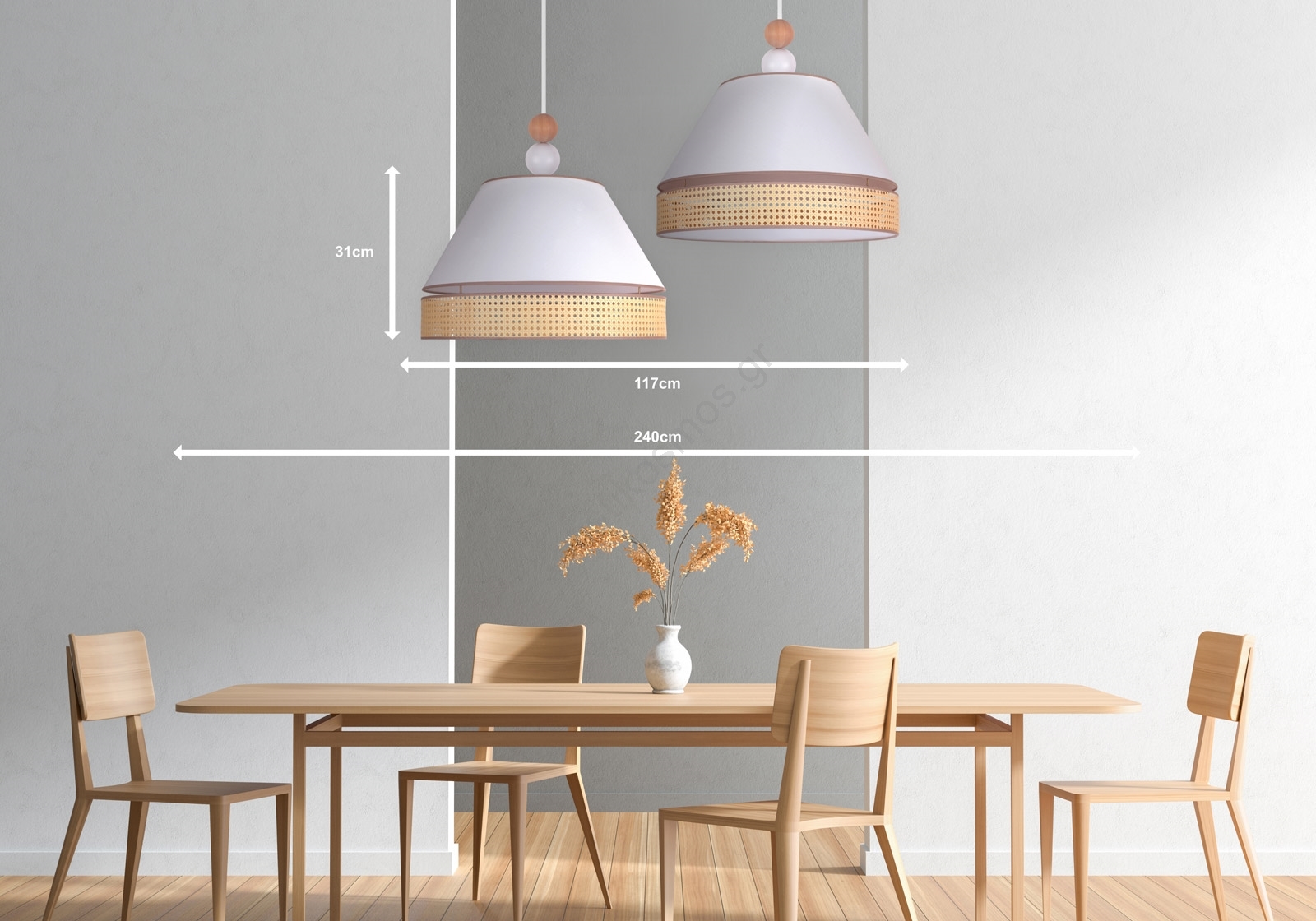 Duolla - Κρεμαστό φωτιστικό οροφής AVIGNON 2xE27/15W/230V λευκό/rattan χαρακτηρίζεται από ωραίο και λειτουργικό design.  Μια λάμπα με ντουί E27 είναι κατάλληλη για το φωτιστικό. Εδώ, μπορείτε να αγοράσετε και άλλους λαμπτήρες σε συμφέρουσες τιμές. Θα αποκτήσετε μια εντυπωσιακή προσθήκη στο σπίτι σας.