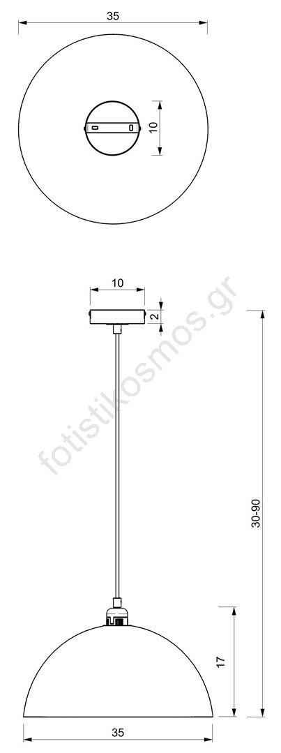 Κρεμαστό φωτιστικό κλασσικό μονόφωτο BETA 1xE27/60W/230V διάμετρος 35 cm λευκό | Fotisti kosmos