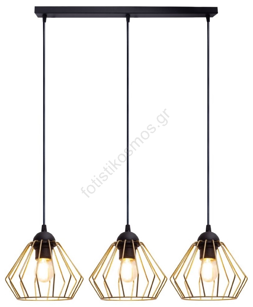 Κρεμαστό φωτιστικό οροφής CEED GOLD 3xE27/60W/230V μαύρο/χρυσαφί | Fotisti kosmos