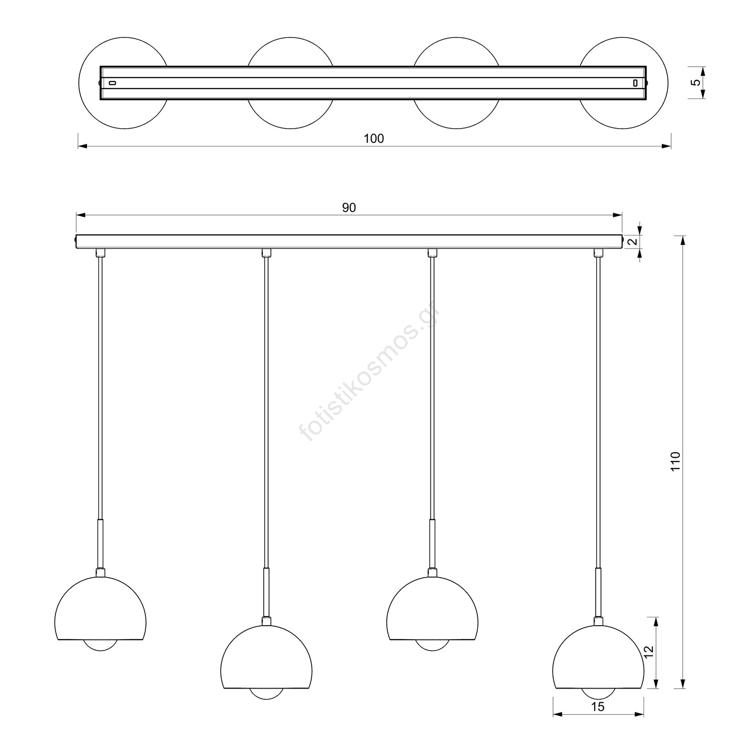 Πολύφωτο με συρματόσχοινο COOL 4xE27/60W/230V μαύρο