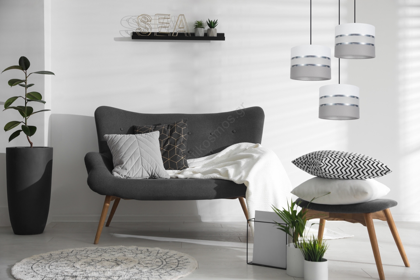 • Κρεμαστό φωτιστικό τρίφωτο CORAL 3xE27/60W/230V λευκό/γκρι