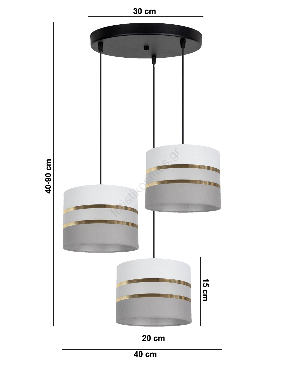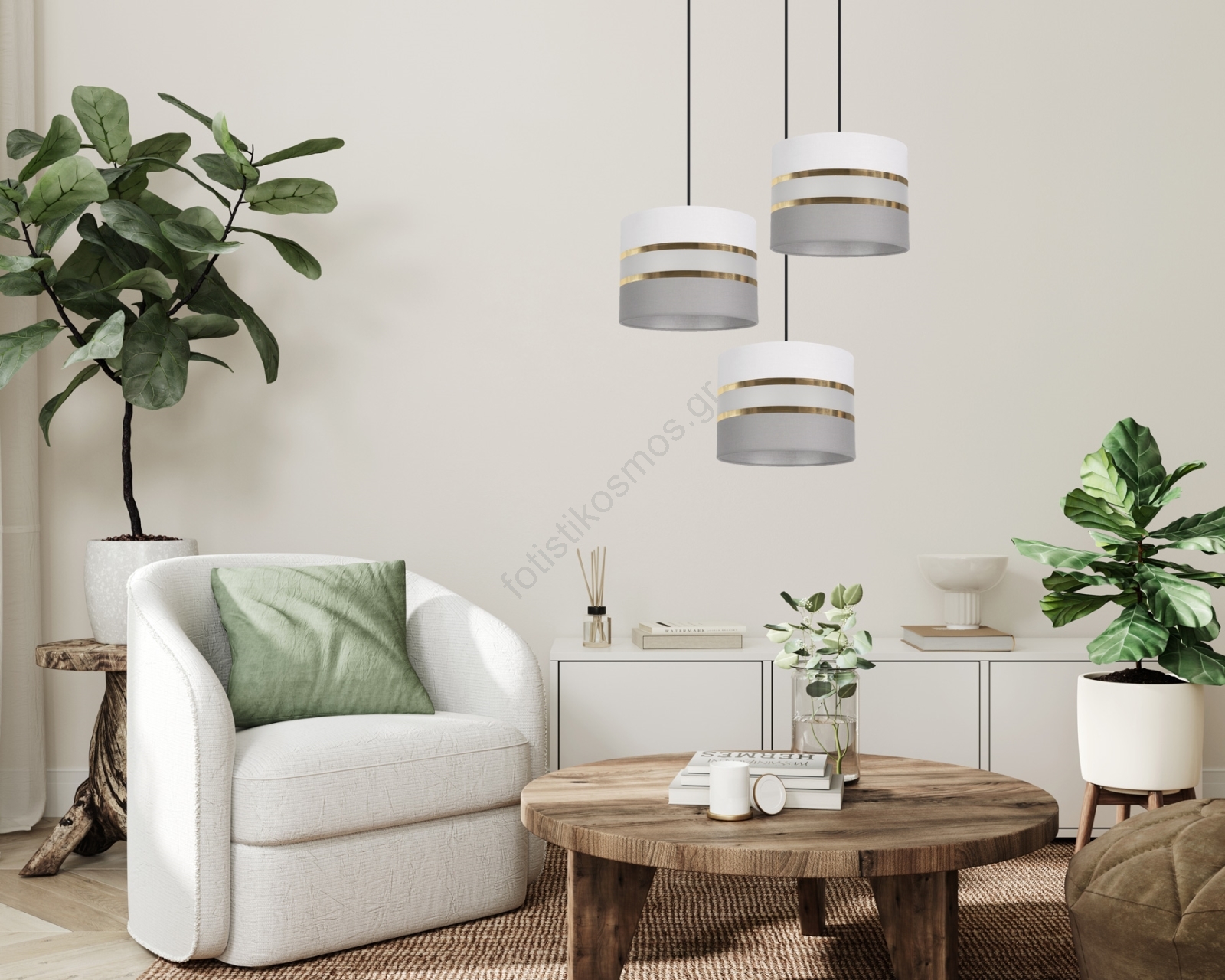 Κρεμαστό φωτιστικό οροφής τρίφωτο CORAL 3xE27/60W/230V λευκό/γκρι | Fotisti kosmos