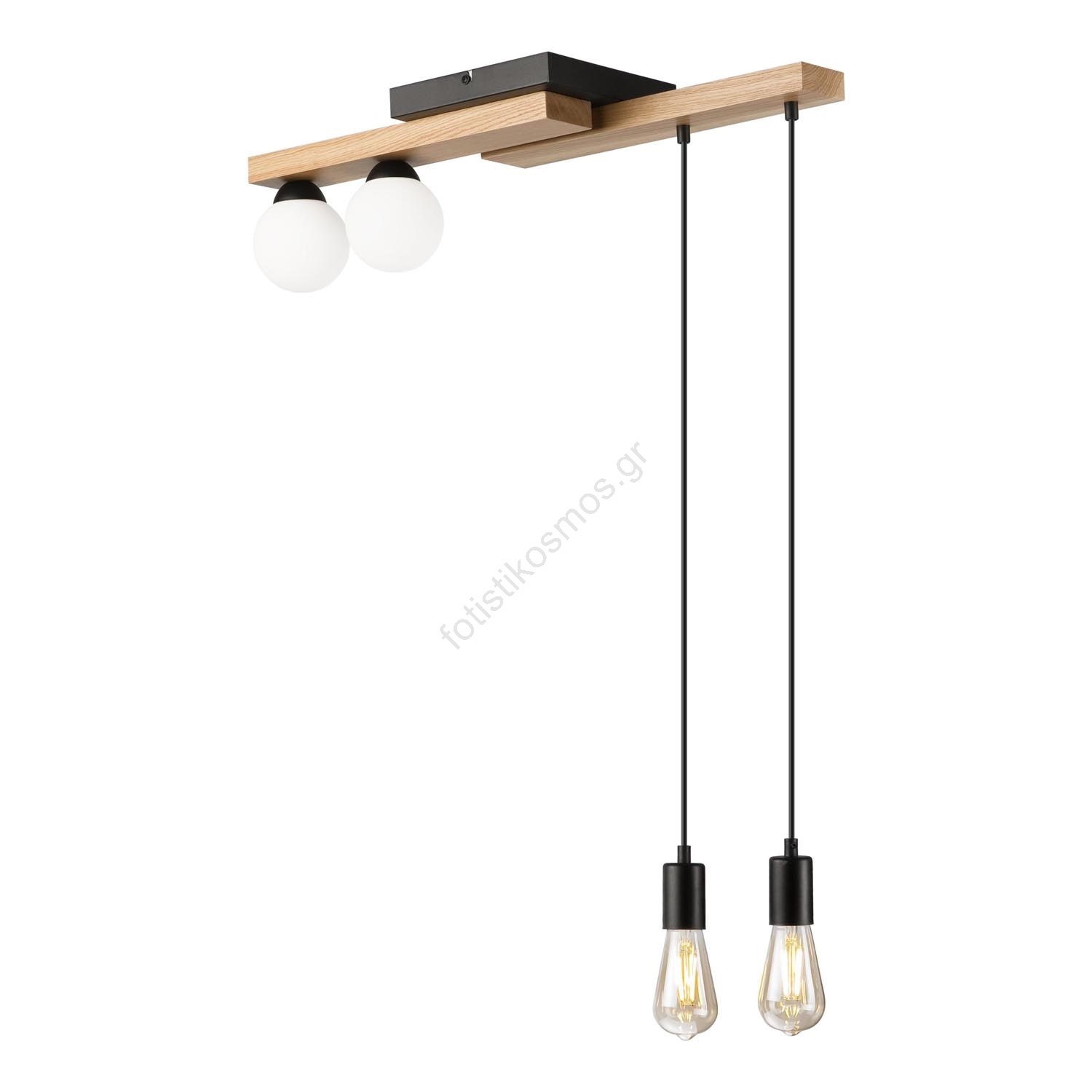 Κρεμαστό φωτιστικό οροφής CORTINA 2xE27/15W/230V + 2xG9/5W/230V μαύρο/δρυς | Fotisti kosmos