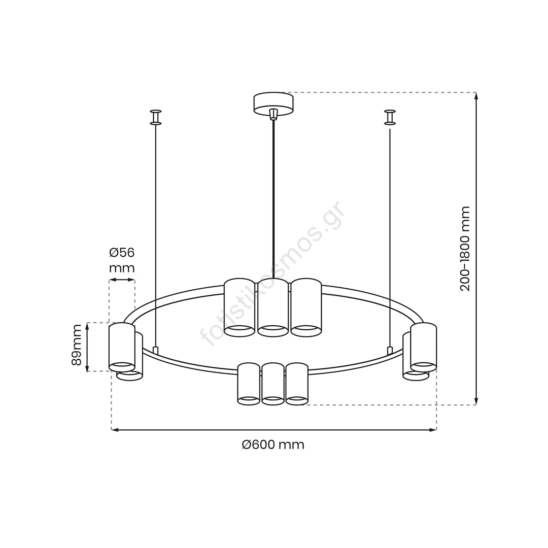• Πολύφωτο με συρματόσχοινο GENESIS 10xGU10/8W/230V μαύρο
