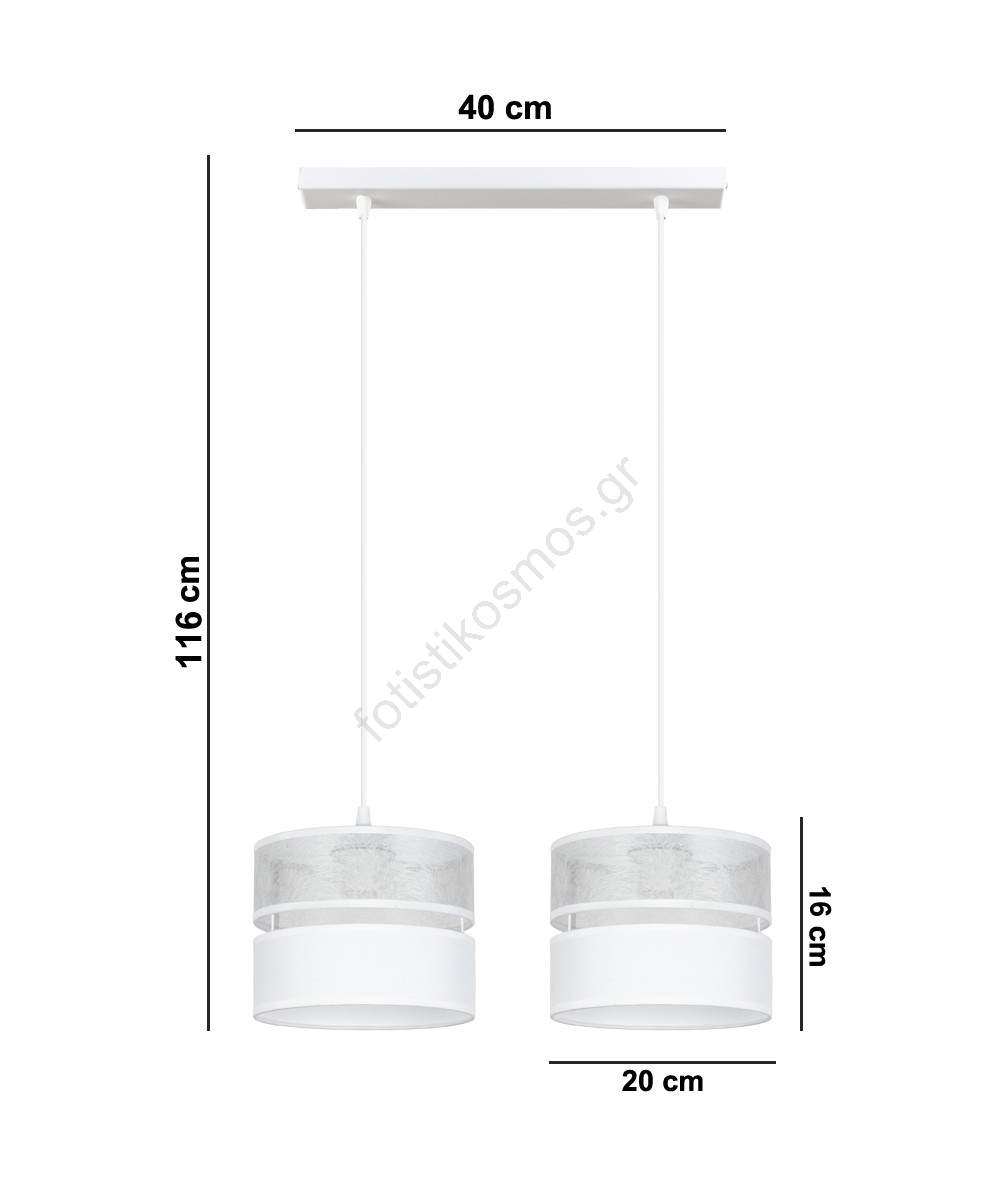 Κρεμαστό φωτιστικό οροφής LIMA 2xE27/60W/230V ασημί/λευκό | Fotisti kosmos