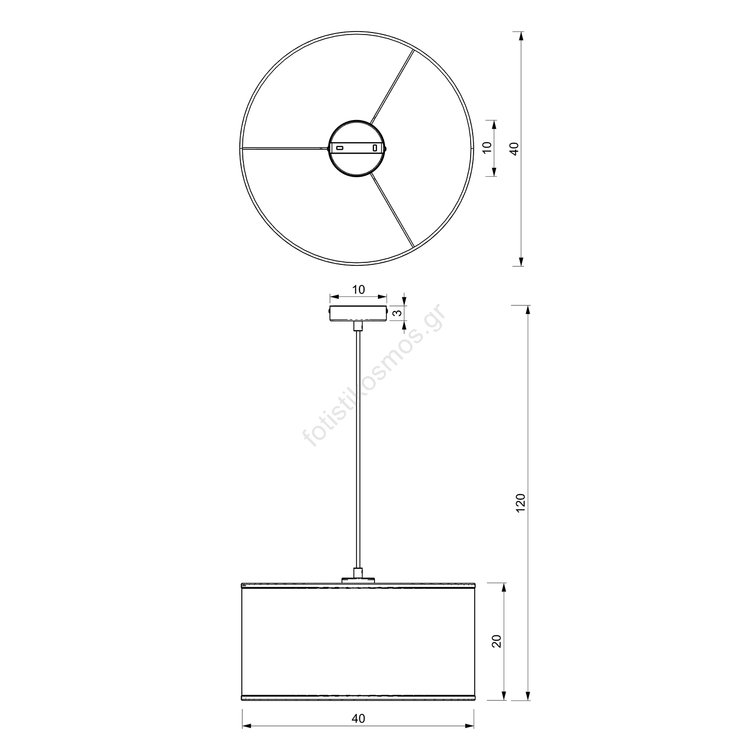 • Φωτιστικό οροφής με καλώδιο ARDEN 1xE27/60W/230V διάμ. 40 εκ. λευκό