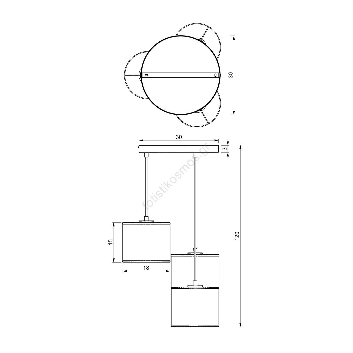 • Φωτιστικό οροφής με καλώδιο ARDEN 3xE27/60W/230V μαύρο/λευκό