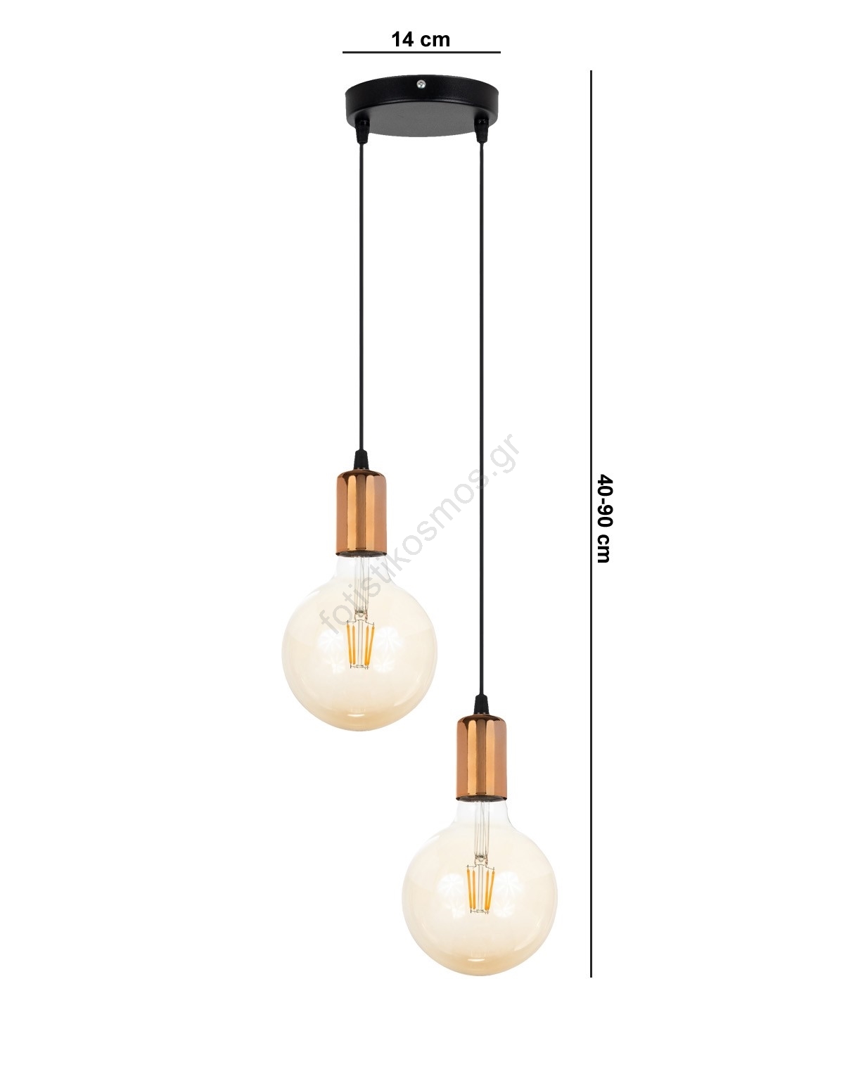 Κρεμαστό φωτιστικό οροφής MIROS 2xE27/60W/230V στρογγυλό μαύρο/χάλκινο | Fotisti kosmos