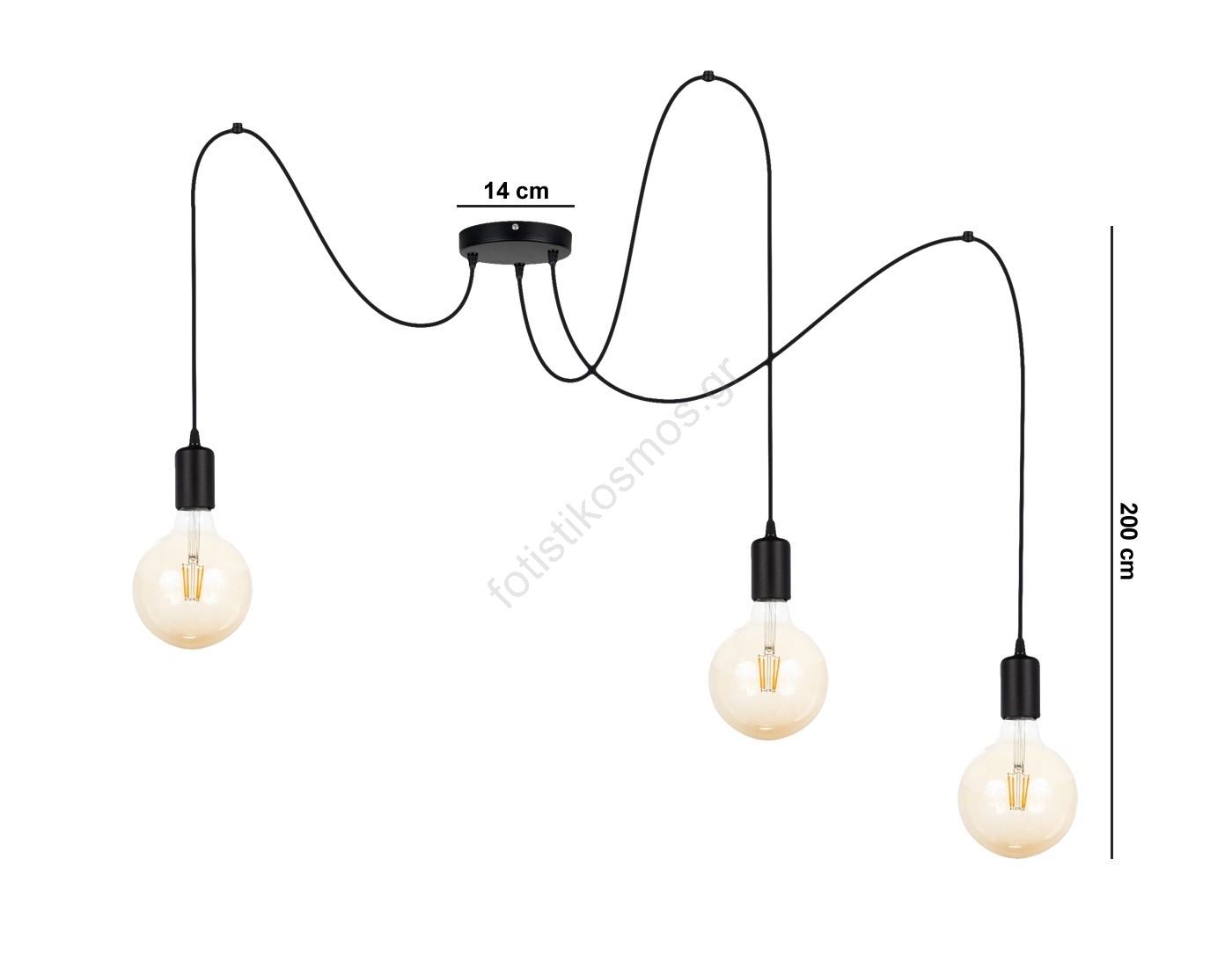 Κρεμαστό φωτιστικό οροφής MIROS 3xE27/60W/230V spider μαύρο | Fotisti kosmos
