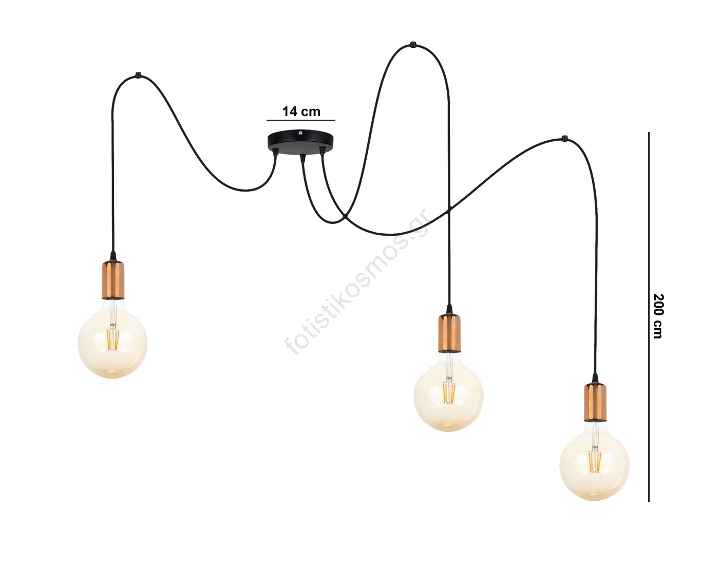 Κρεμαστό φωτιστικό οροφής MIROS 3xE27/60W/230V spider μαύρο/χαλκός | Fotisti kosmos