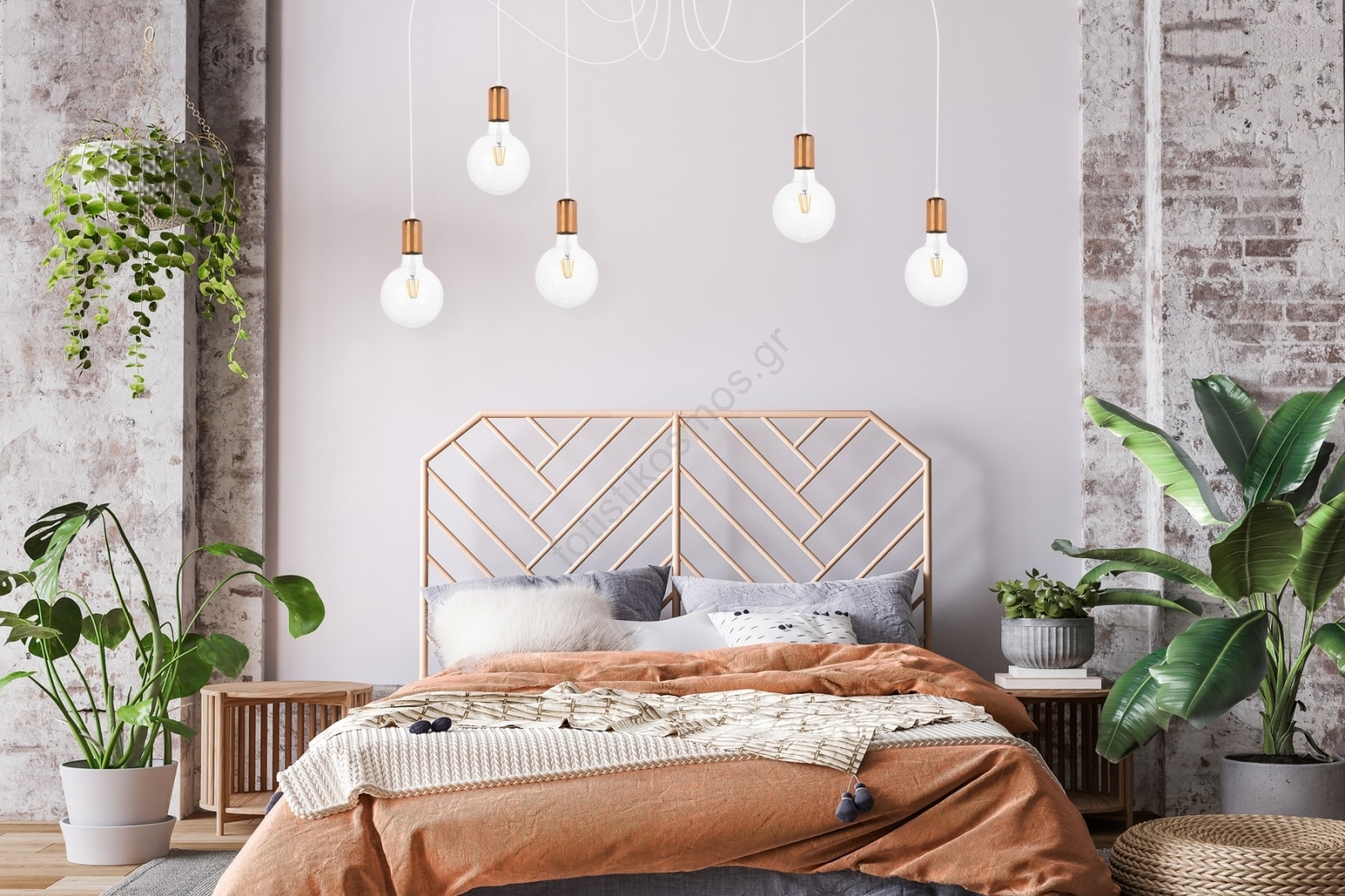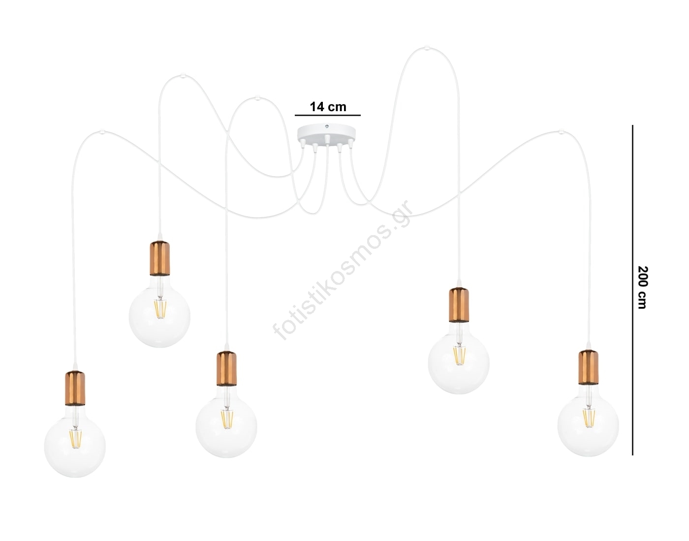 Κρεμαστό φωτιστικό οροφής MIROS 5xE27/60W/230V spider λευκό/χαλκός | Fotisti kosmos