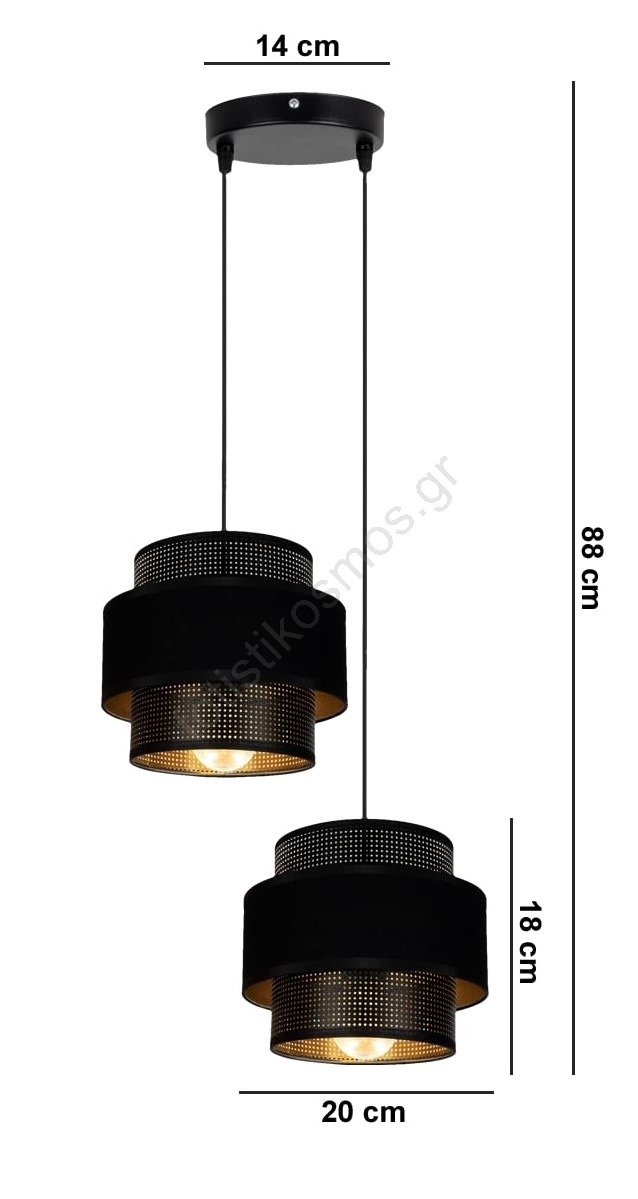 Κρεμαστό φωτιστικό οροφής δίφωτο NESS 2xE27/60W/230V διάμετρος 30 cm μαύρο | Fotisti kosmos