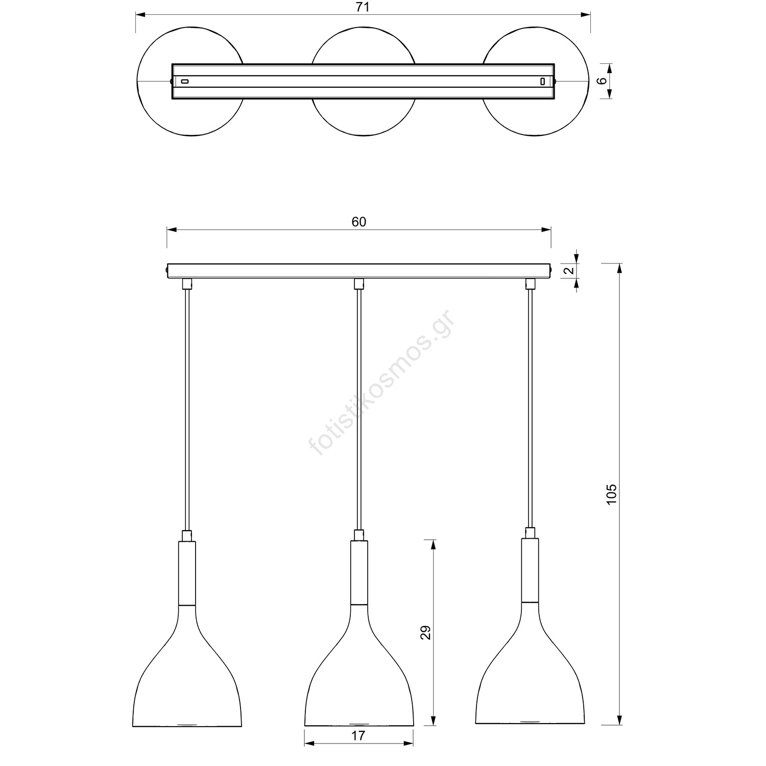 Κρεμαστό φωτιστικό οροφής NOAK 3xE27/15W/230V μαύρο/χρώμιο | Fotisti kosmos