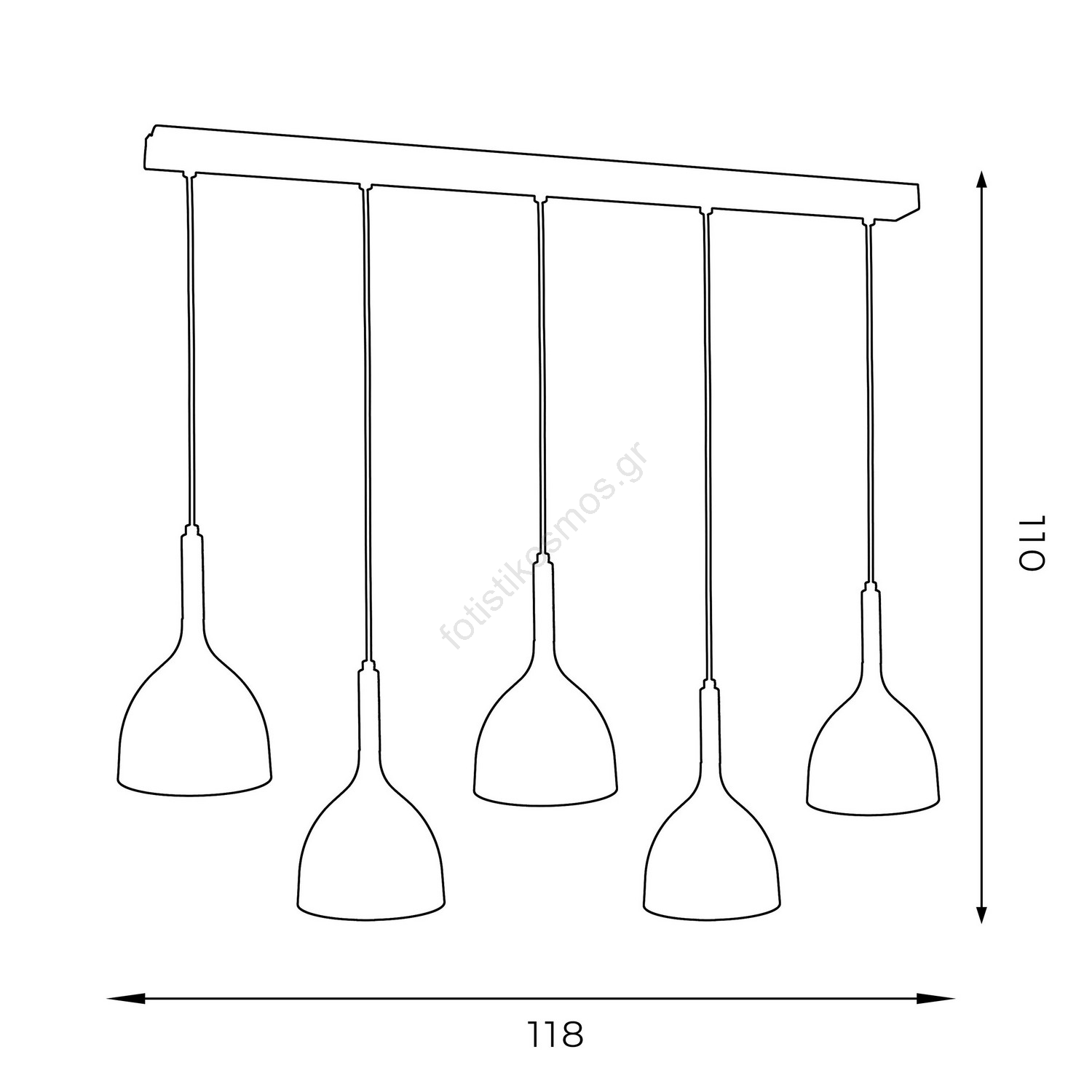 Κρεμαστό φωτιστικό οροφής ράγα NOAK WOOD 5xE27/60W/230V | Fotisti kosmos