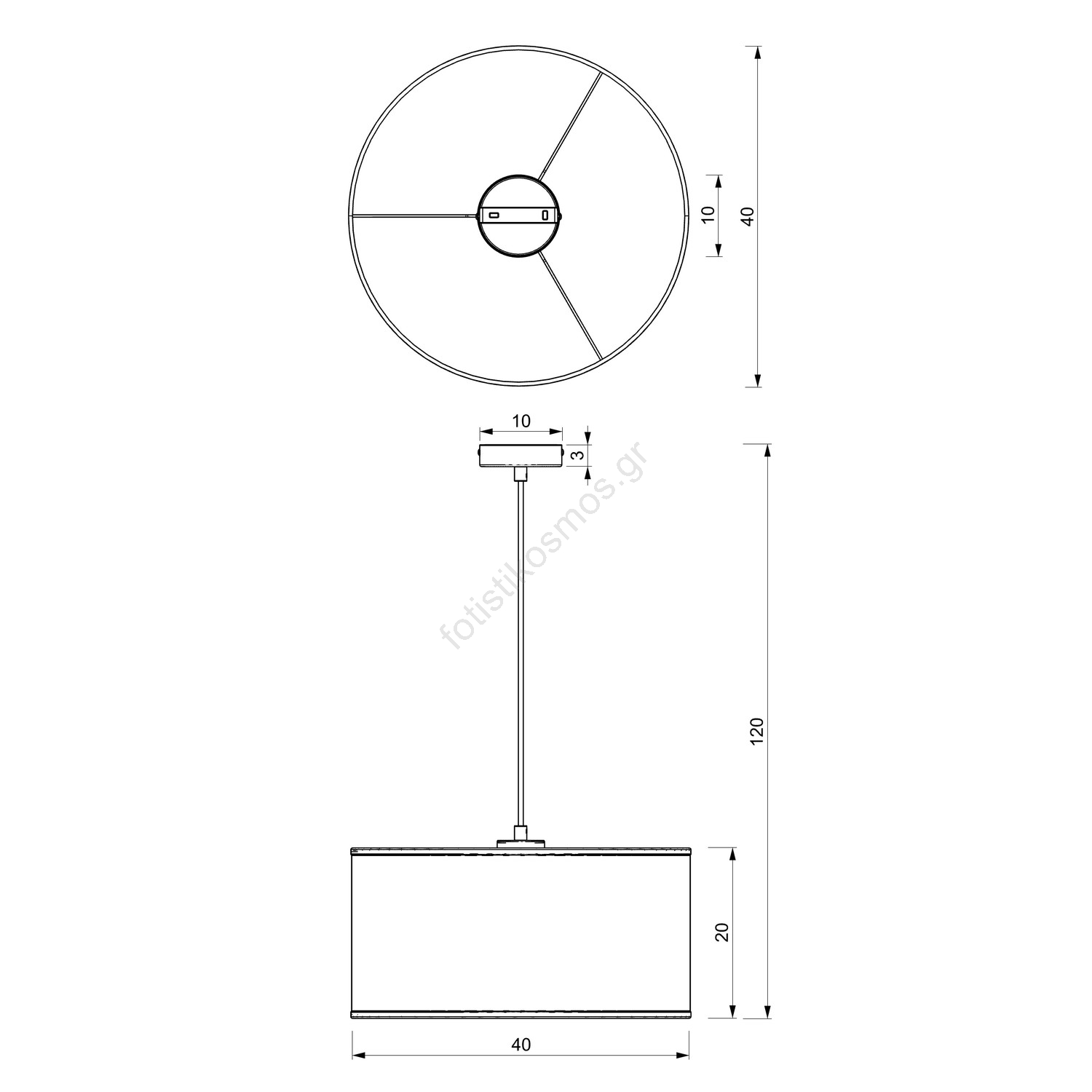 • Φωτιστικό οροφής με καλώδιο ARDEN 1xE27/60W/230V διάμ. 40 εκ. λευκό