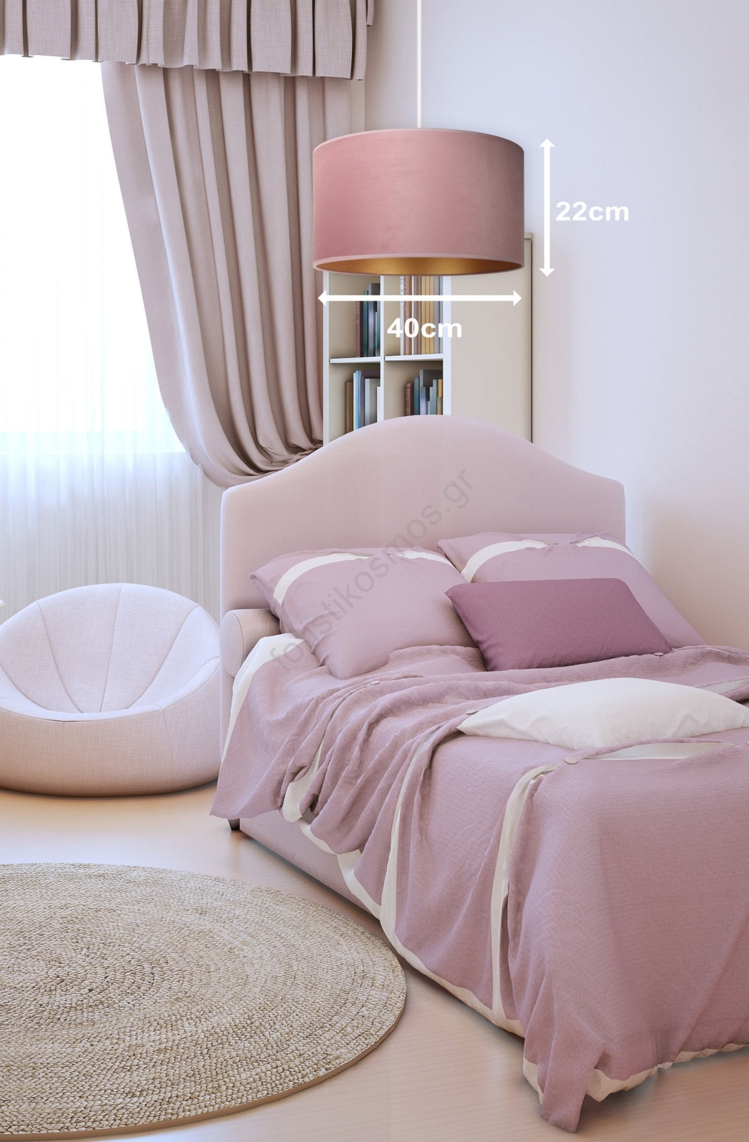 Duolla - Κρεμαστό φωτιστικό οροφής ROLLER 1xE27/15W/230V διάμετρος 40 cm ροζ/χρυσό | Fotisti kosmos