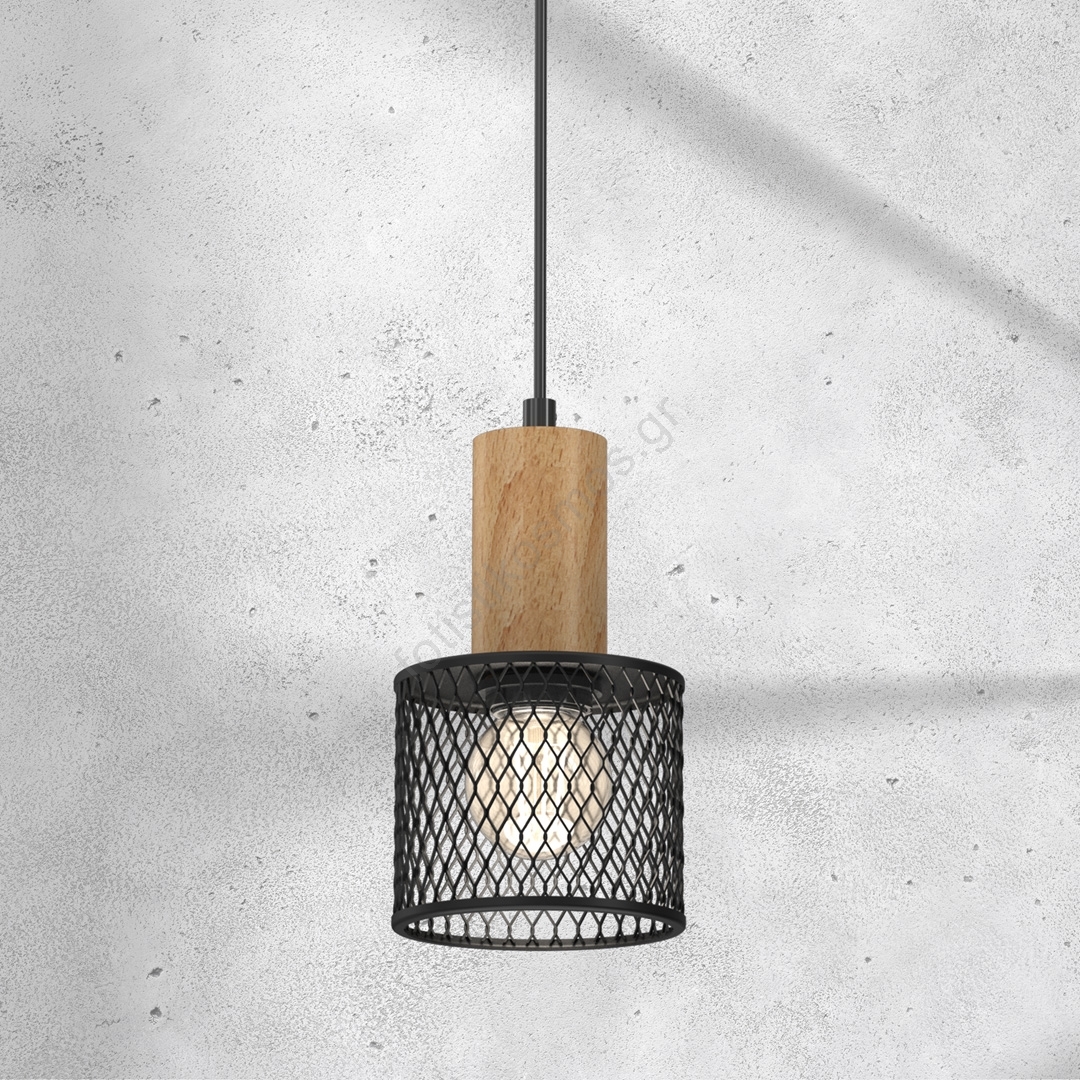 Κρεμαστό φωτιστικό οροφής μονόφωτο SOBRESA 1xE27/60W/230V μαύρο/ξύλο | Fotisti kosmos