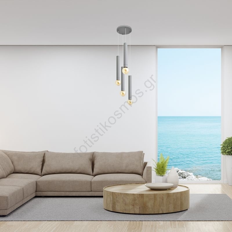 Κρεμαστό φωτιστικό οροφής TUBA 4xE27/15W/230V γκρι | Fotisti kosmos