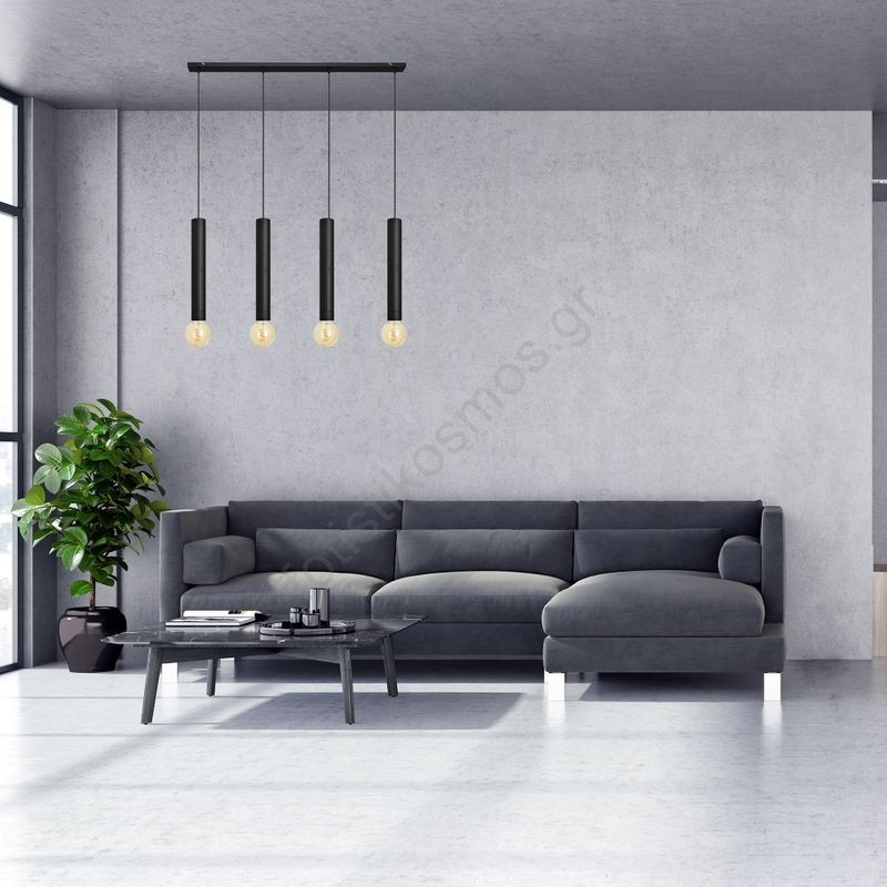 Κρεμαστό φωτιστικό οροφής ράγα TUBA 4xE27/15W/230V μαύρο | Fotisti kosmos