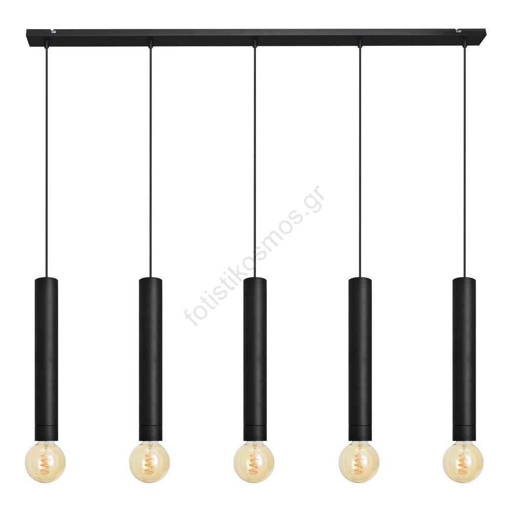 Κρεμαστό φωτιστικό οροφής ράγα TUBA 5xE27/15W/230V μαύρο | Fotisti kosmos