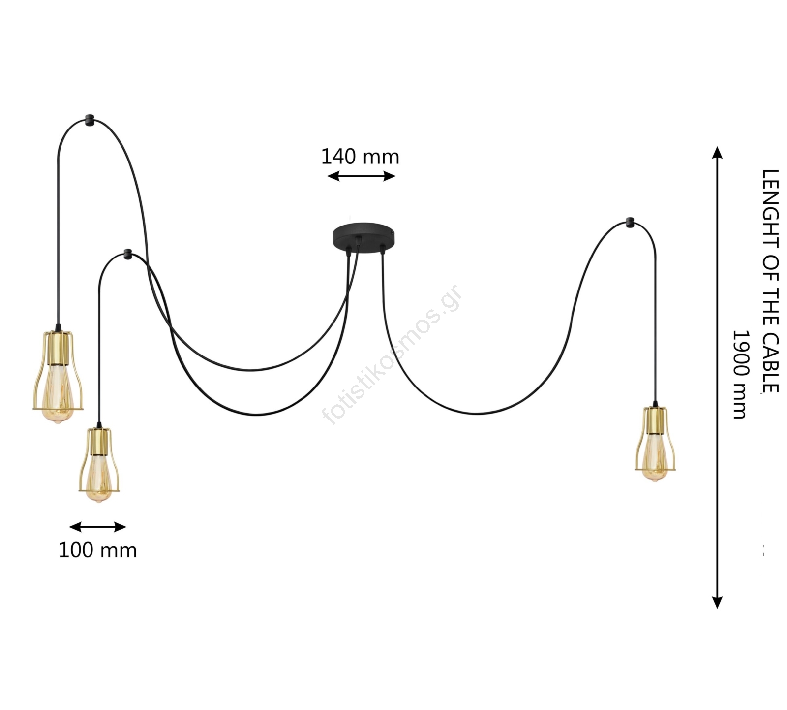 Κρεμαστό φωτιστικό οροφής TUBE 3xE27/10W/230V spider μαύρο/χρυσό | Fotisti kosmos