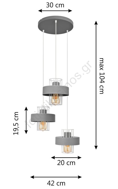 Κρεμαστό φωτιστικό οροφής τρίφωτο VOLTA 3xE27/15W/230V διάμετρος 42 cm γκρι | Fotisti kosmos