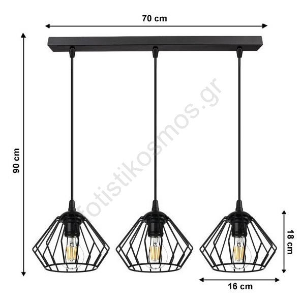 Κρεμαστό φωτιστικό οροφής CEED 3xE27/60W/230V μαύρο | Fotisti kosmos