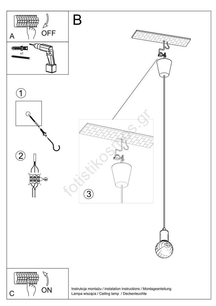 Πολύφωτο σε σχοινί DIEGO 1xE27/60W/230V