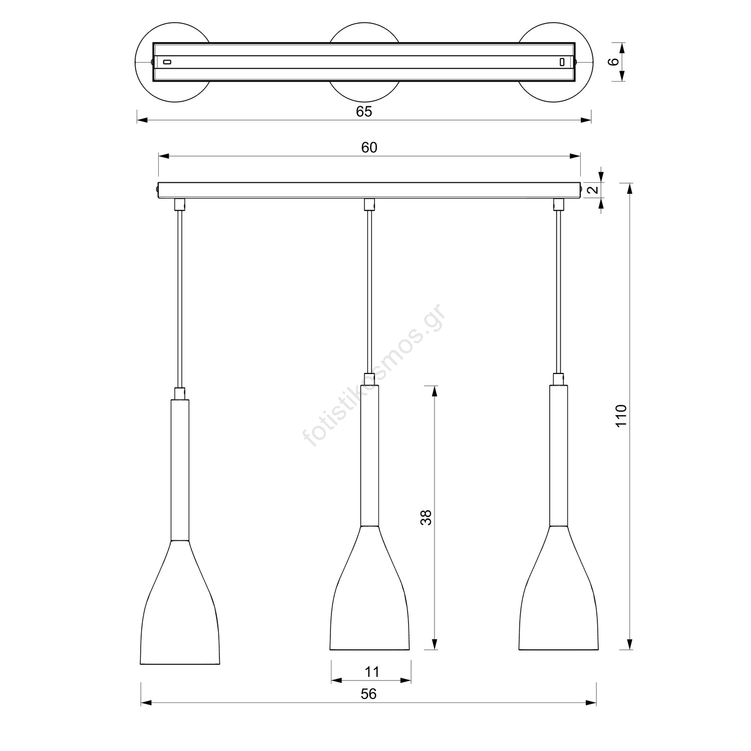 • Πολύφωτο ράγα MUZA 3xE27/60W/230V