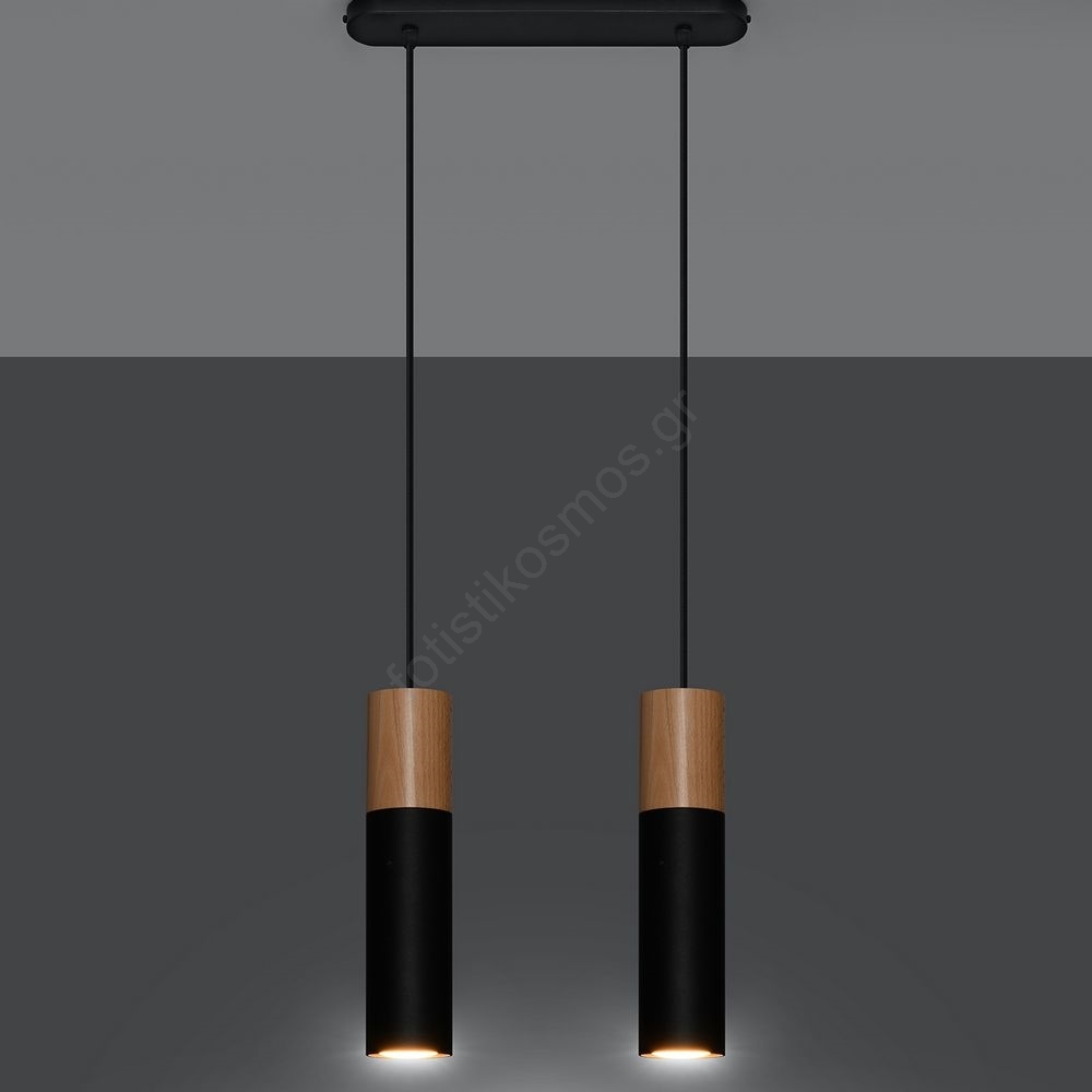 Κρεμαστό φωτιστικό οροφής PABLO 2xGU10/40W/230V μαύρο/οξιά