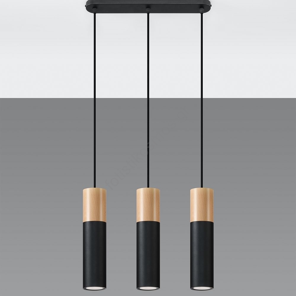 Κρεμαστό φωτιστικό οροφής PABLO 3xGU10/40W/230V μαύρο/οξιά χαρακτηρίζεται από ωραίο και λειτουργικό design.  Μια λάμπα με ντουί GU10 είναι κατάλληλη για το φωτιστικό. Εδώ, μπορείτε να αγοράσετε και άλλους λαμπτήρες σε συμφέρουσες τιμές. Θα αποκτήσετε μια εντυπωσιακή προσθήκη στο σπίτι σας.