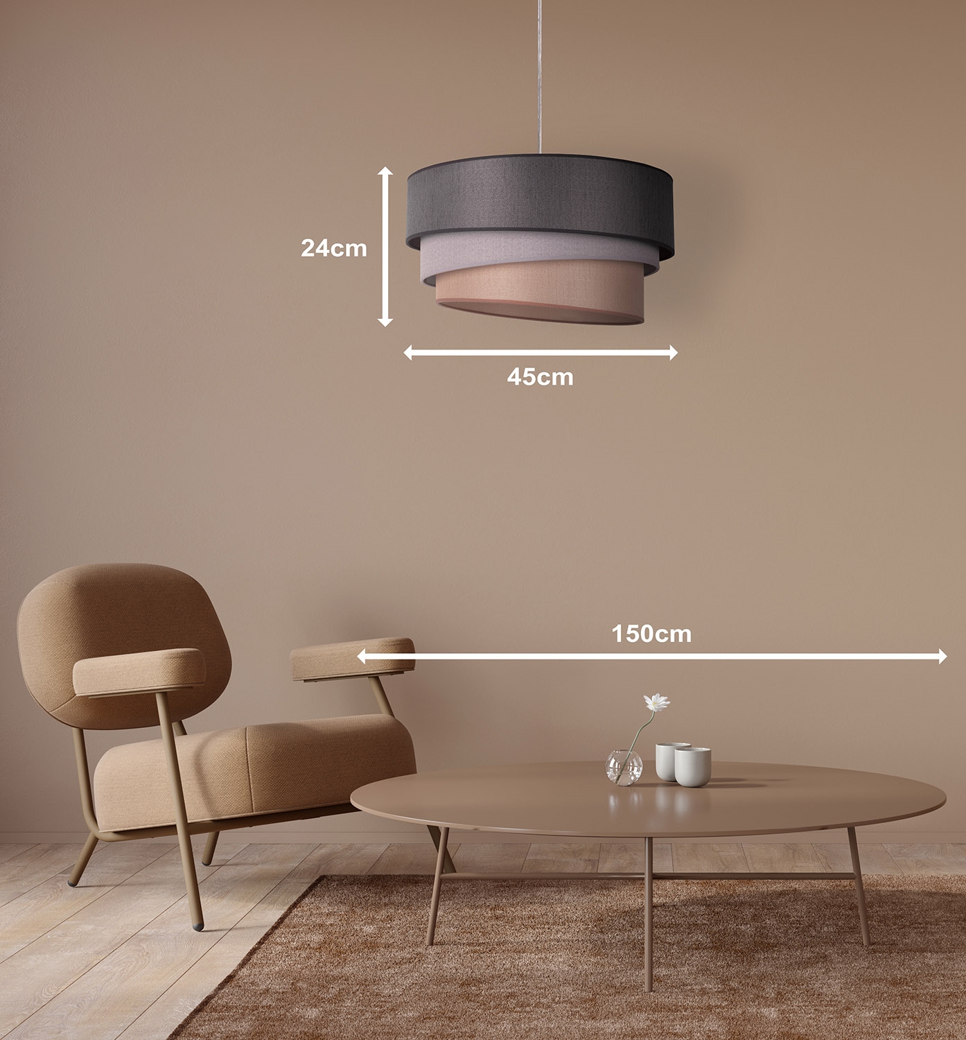 • Duolla - Κρεμαστό φωτιστικό οροφής TRIO 1xE27/40W/230V διάμετρος 45 cm ανθρακί/γκρι/καφέ