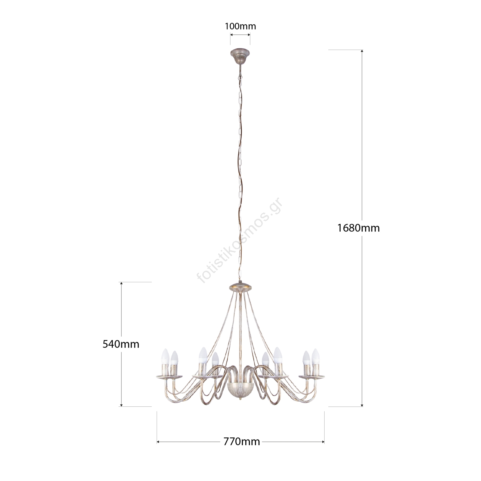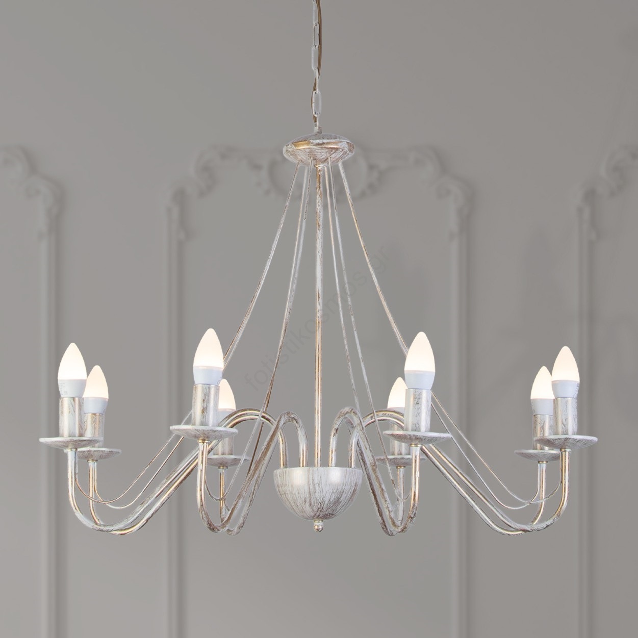 Πολυέλαιος με αλυσίδα MALBO 8xE14/10W/230V λευκό/χρυσό/πατίνα