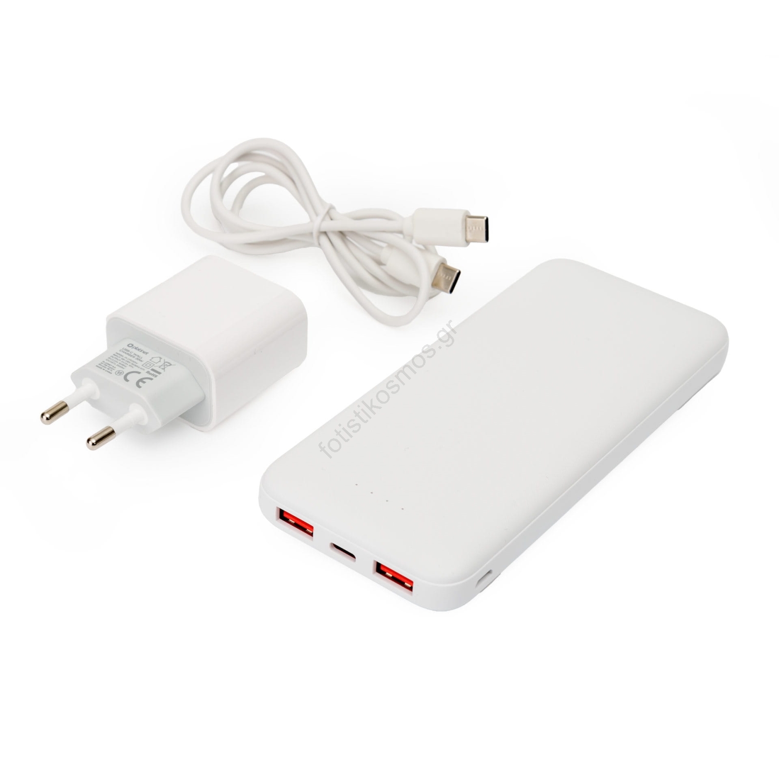 Power Bank 10000 mAh + αντάπτορας 20W Power Delivery + USB-C/USB-C καλώδιο 1m λευκό | Fotisti kosmos