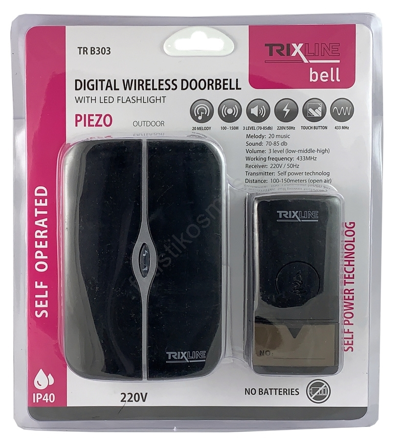 Ασύρματο κουδούνι PIEZO BELL 230V με 1x23A, IP40, μαύρο | Fotisti kosmos