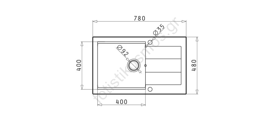 • Αναστρέψιμος νεροχύτης - η γούρνα μπορεί να τοποθετηθεί αριστερά ή δεξιά.