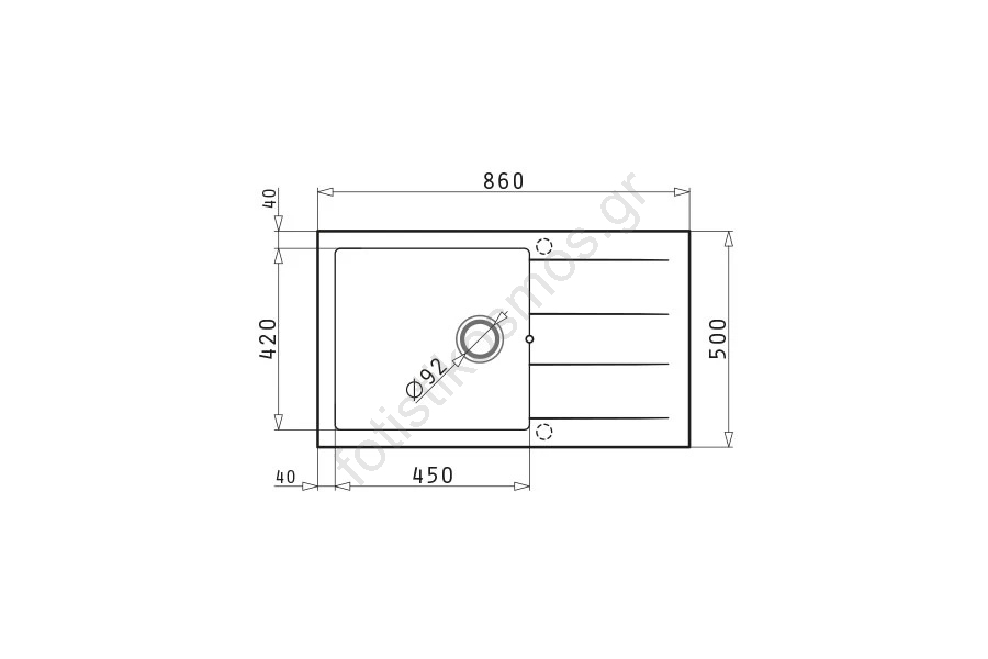 • Αμφίπλευρος νεροχύτης - η γούρνα του νεροχύτη μπορεί να τοποθετηθεί είτε αριστερά είτε δεξιά.
